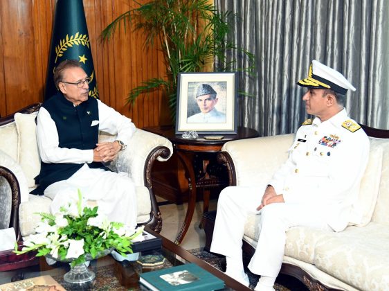 Chief of Naval Staff Admiral Muhammad Amjad Khan Niazi paid a farewell call on President Dr Arif Alvi here at the Aiwan-e-Sadr, the President House said. The president lauded the services of the outgoing naval chief and his contribution to the country and the Pakistan Navy. He wished Admiral Niazi the best for his future.