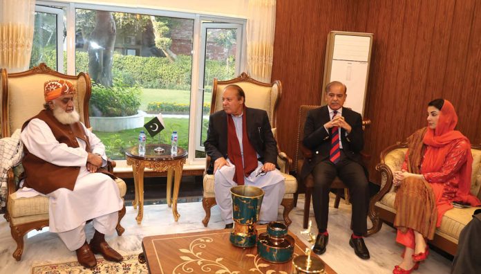 In a significant development, the supremo of Pakistan Muslim League-Nawaz (PML-N), Nawaz Sharif, and the chief of Jamiat Ulema-e-Islam (JUI-F), Maulana Fazlur Rehman, convened a crucial meeting at the PML-N Secretariat in Lahore’s Model Town on Monday.